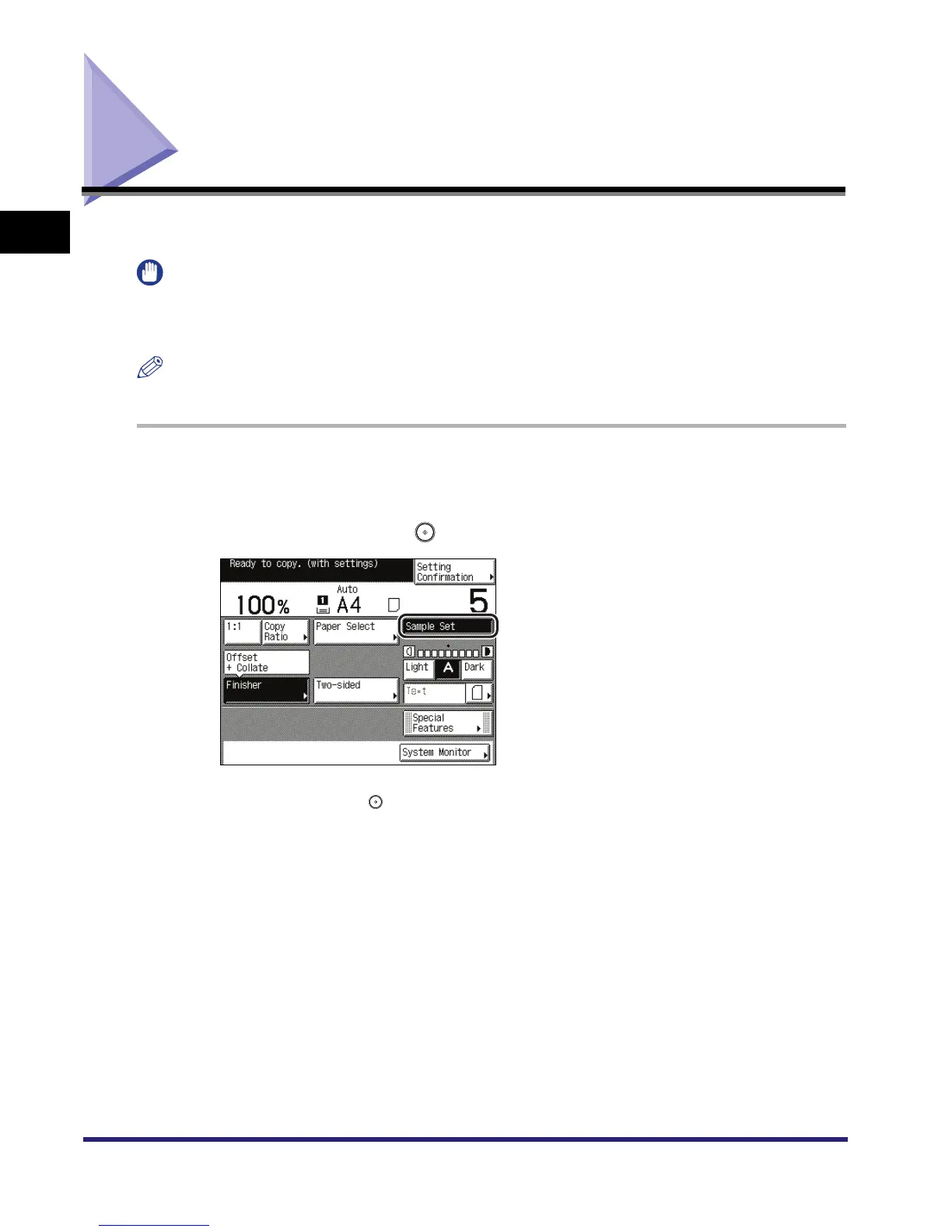 [Sample Set] appears only if you set to make multiple copies of your original in the Collate, Offset
