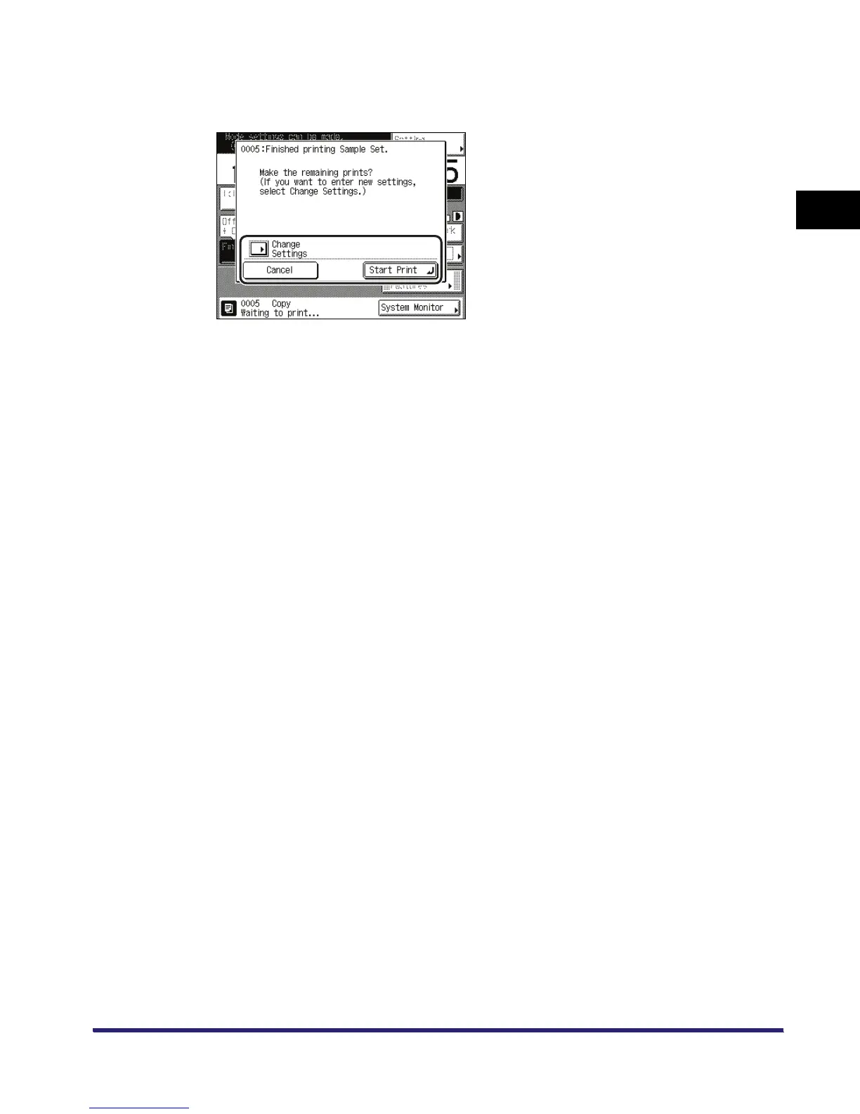 Check the sample set select [Start Print], [Cancel], or [Change