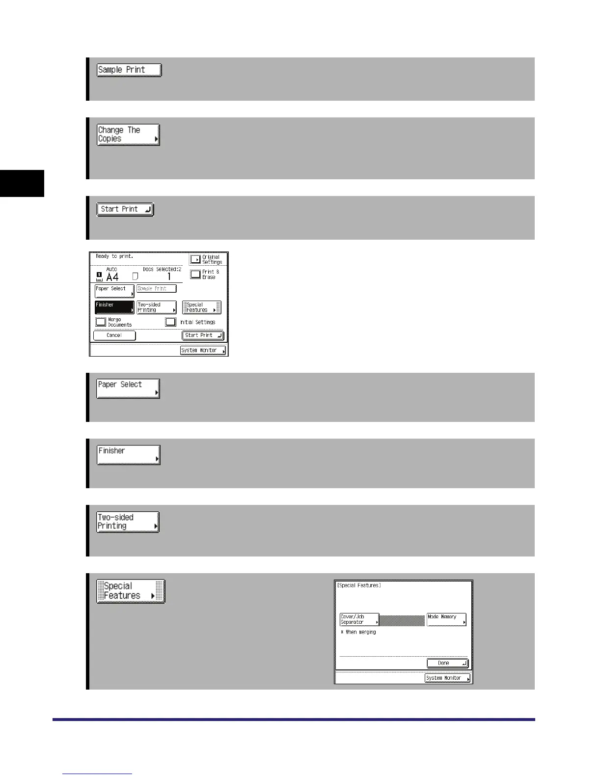 Press to print a sample of the document to check the print result or the contents of the document.
