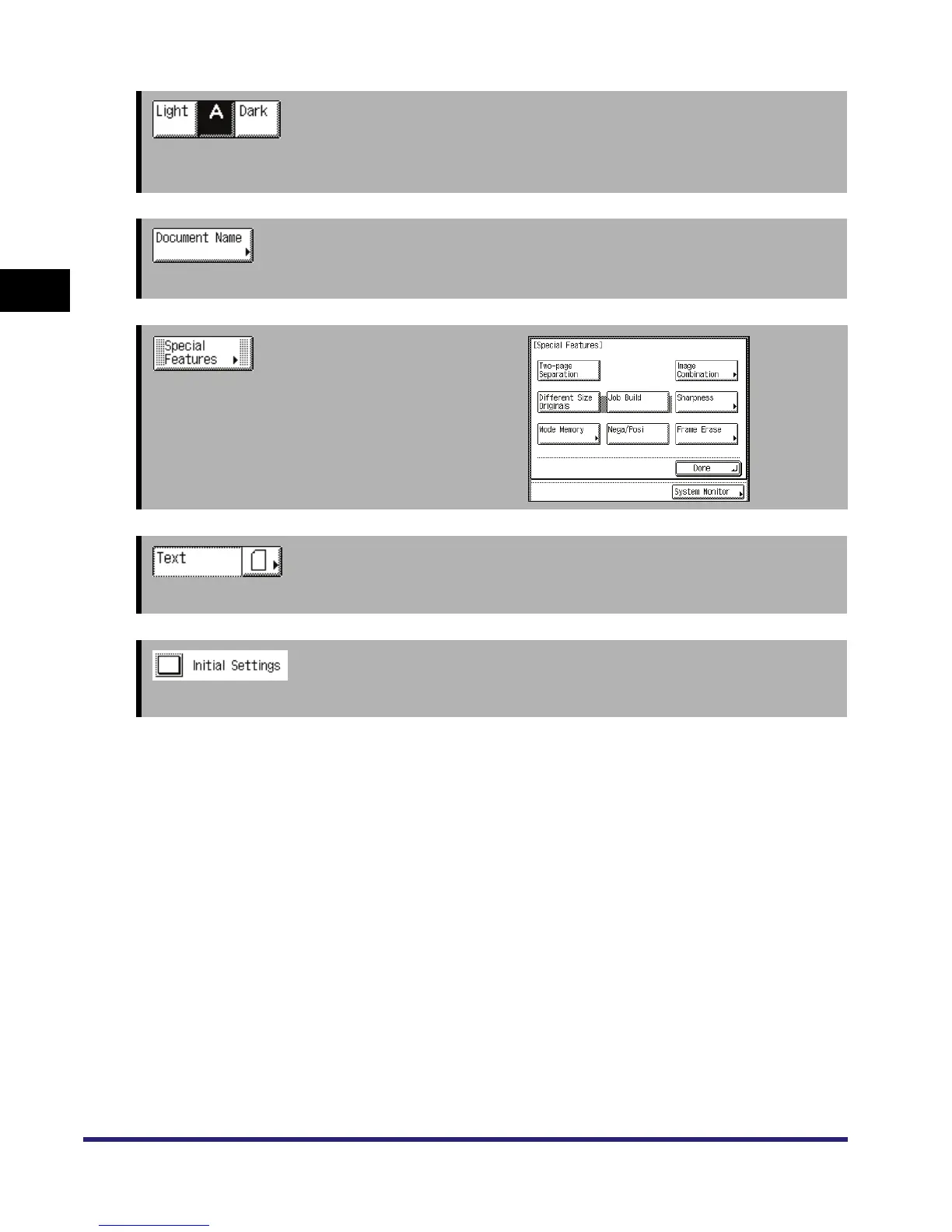 Press to select and use Special Features modes