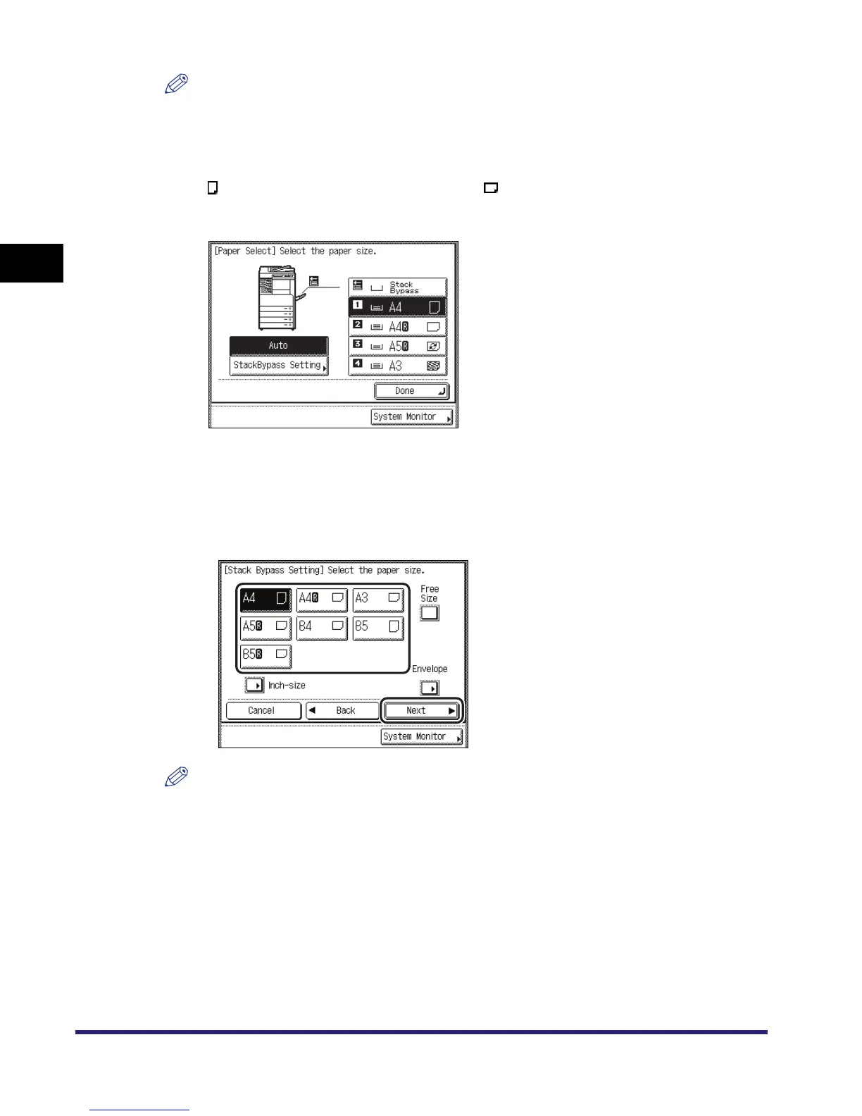 current or reserved job, press [StackBypass Setting] to specify the desired paper size/type.