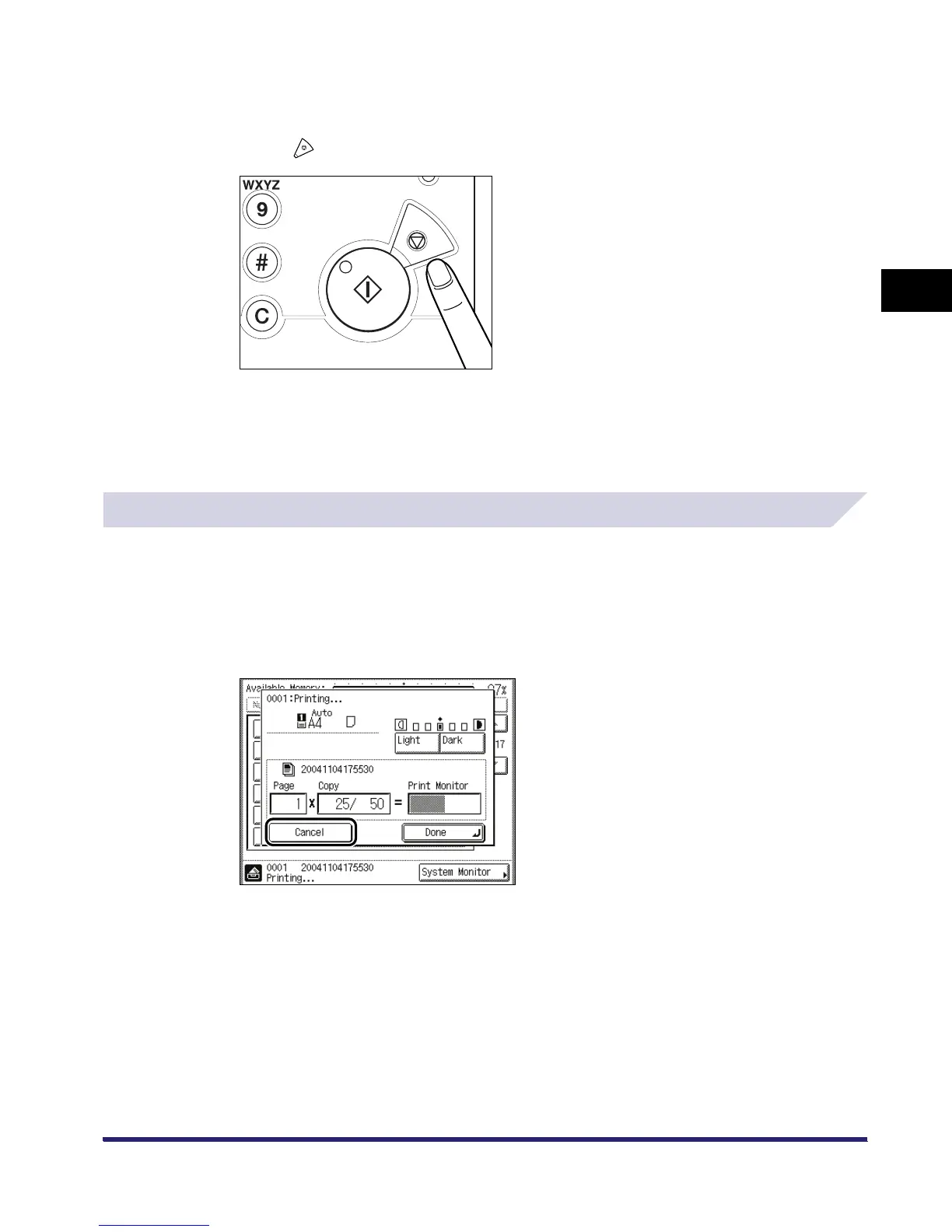 Canon iR3530 - Using the Stop Key; While Printing; Using the Touch Panel Display