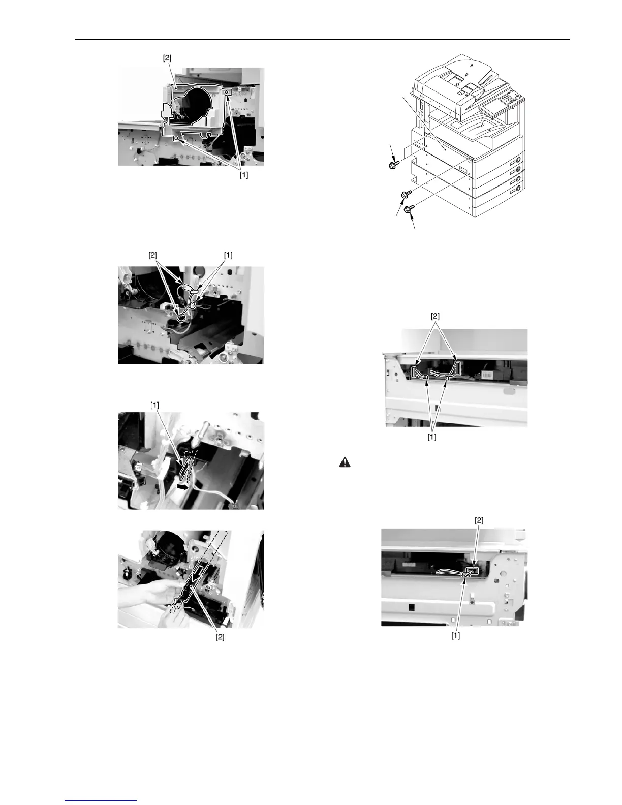 1) Remove the 4 screws [1], and detach the left cover [2].
