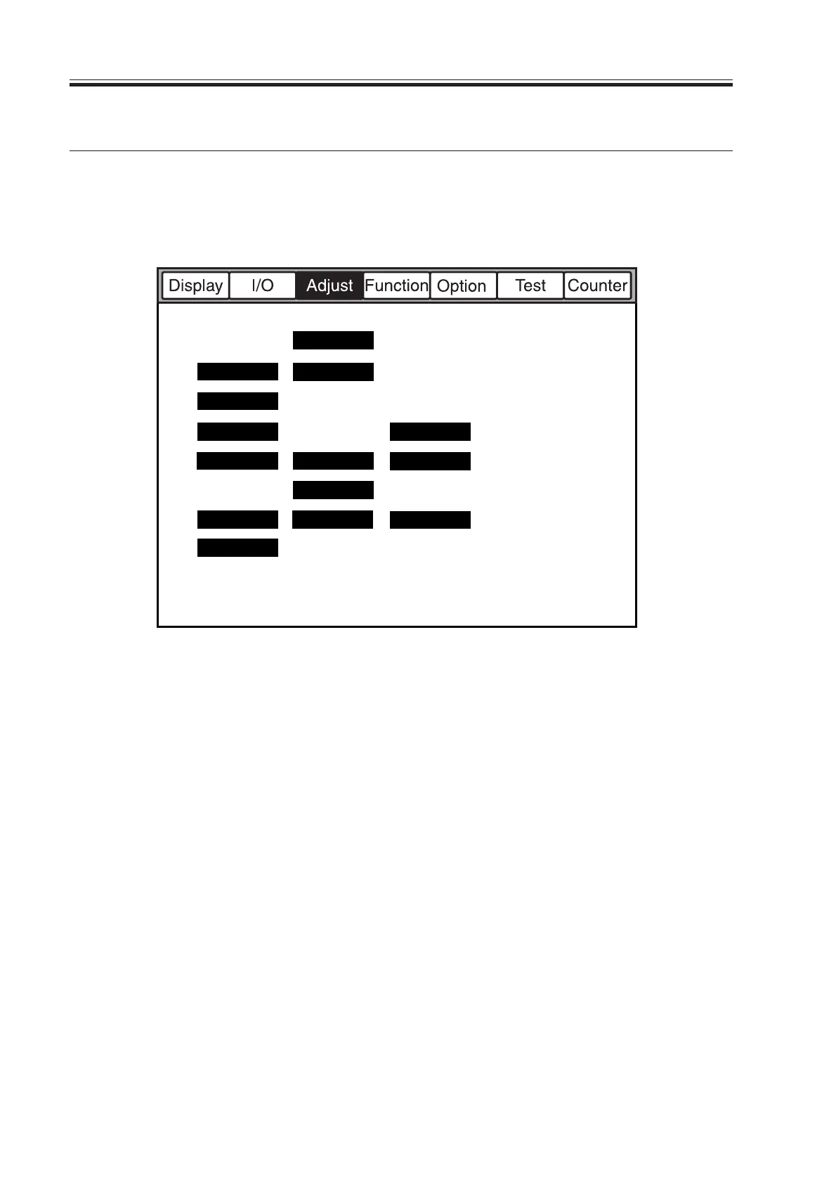 The following screen appears in response to COPIER>ADJUST; for the items, see the