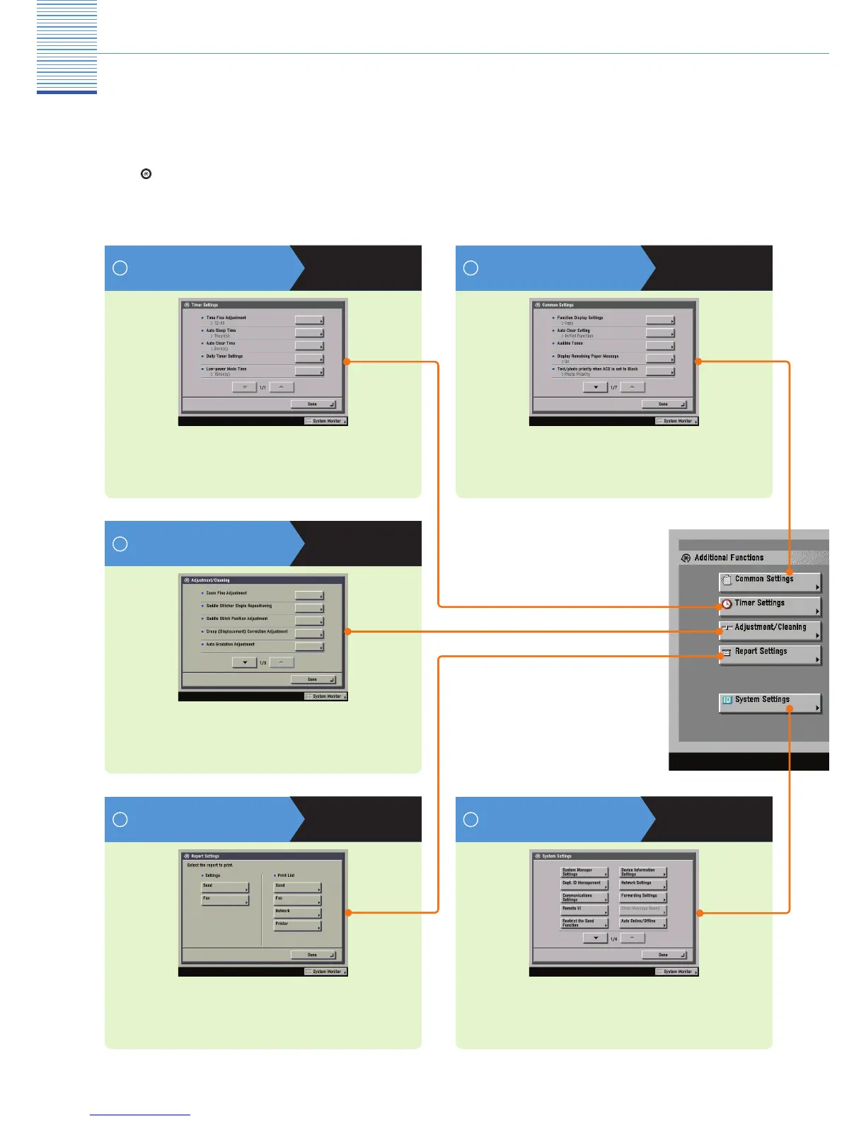 to customize the various settings of the machine. You can also make the necessary settings for using the Fax function,