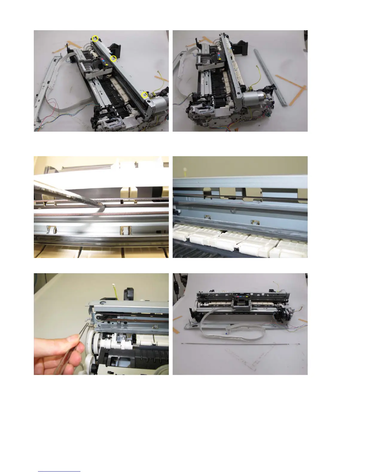 5) On the main chassis, mark the positions of the screws that fix the carriage rail to the main chassis