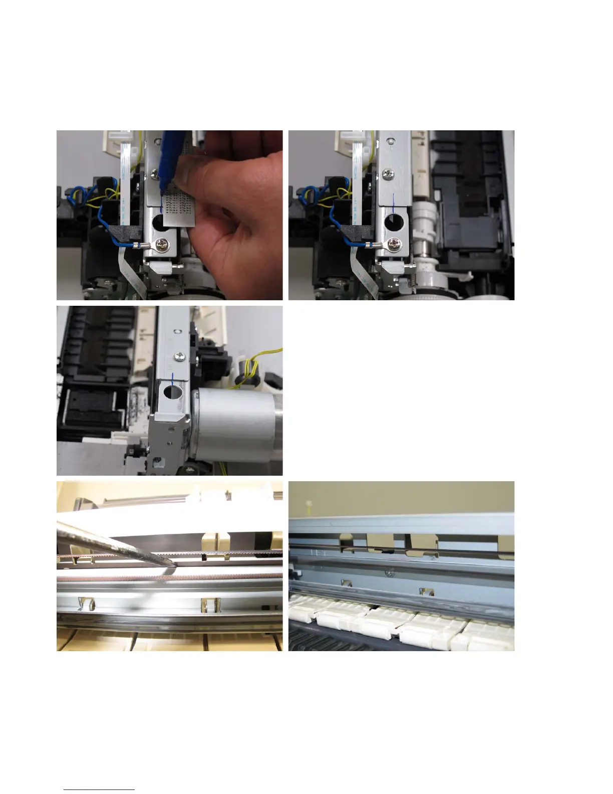 Before removing the screws from the carriage upper rail and carriage rail, put a mark on the main chassis to