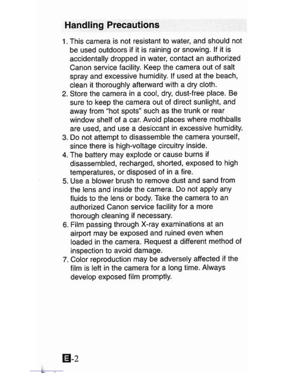 Canon IXUS M-1 - Handling Precautions