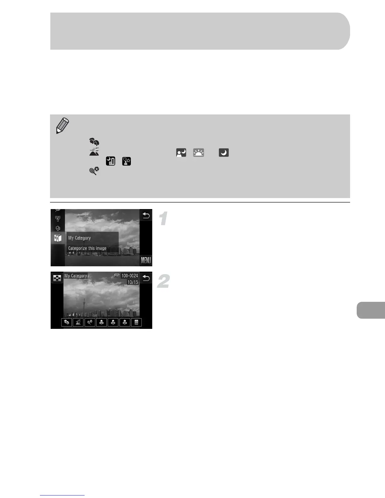• Images are automatically categorized by shooting condition as they are