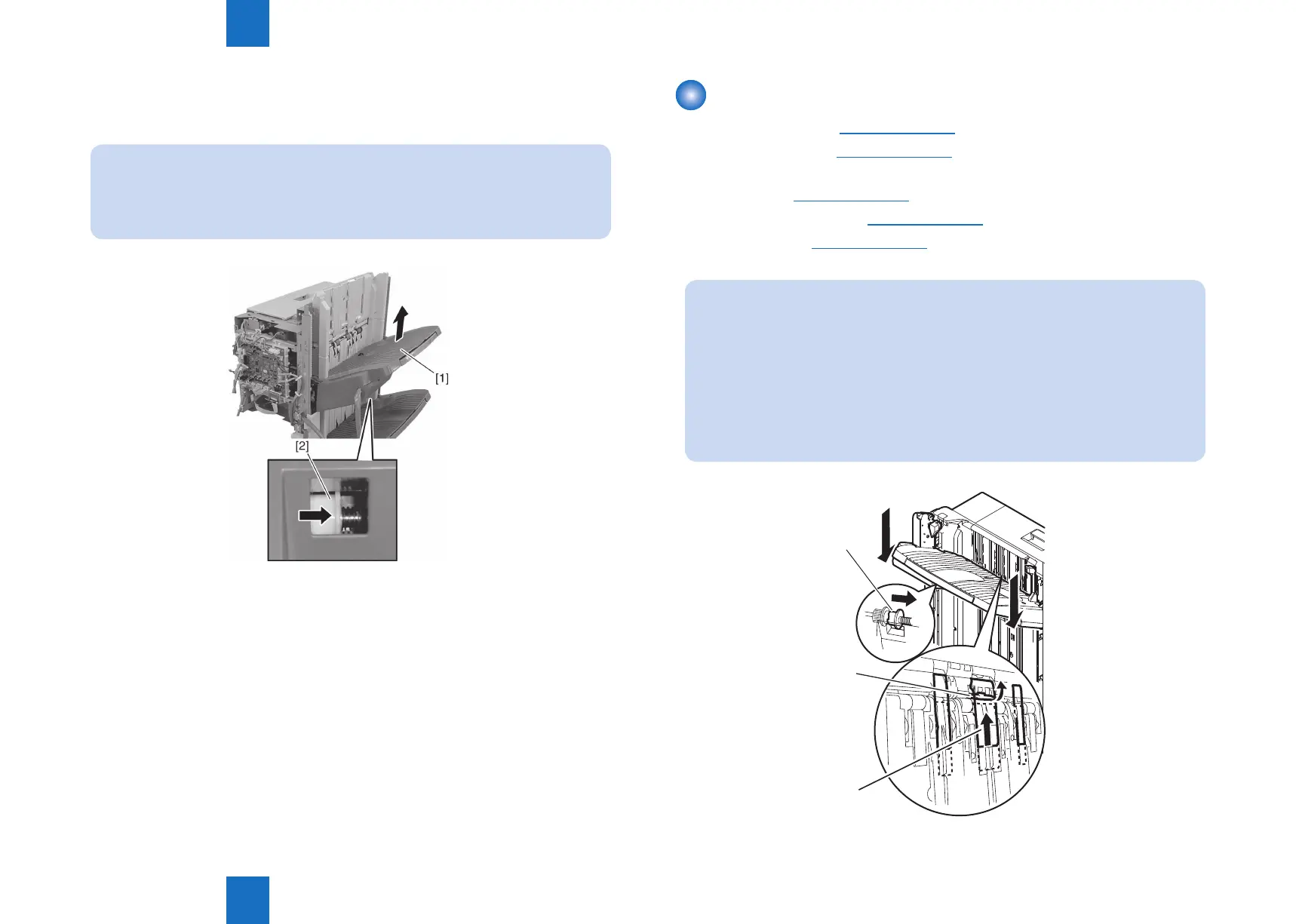 8) Insert your nger in the hole at the rear side of tray 1 [1], push the tray motor gear [2] to