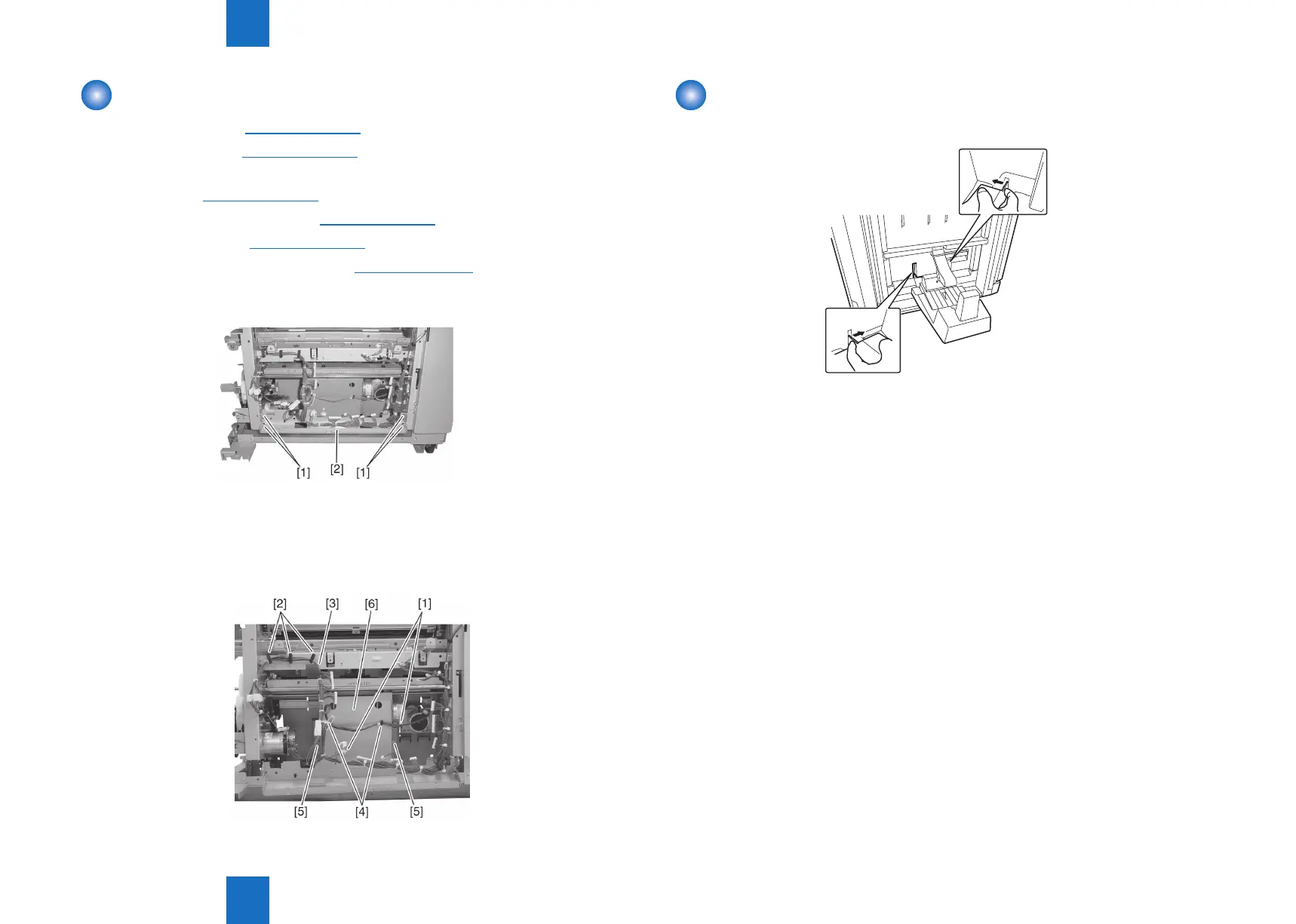 9) Remove two screws [5], shift the positioning plate unit [6] forward once, and then pull it