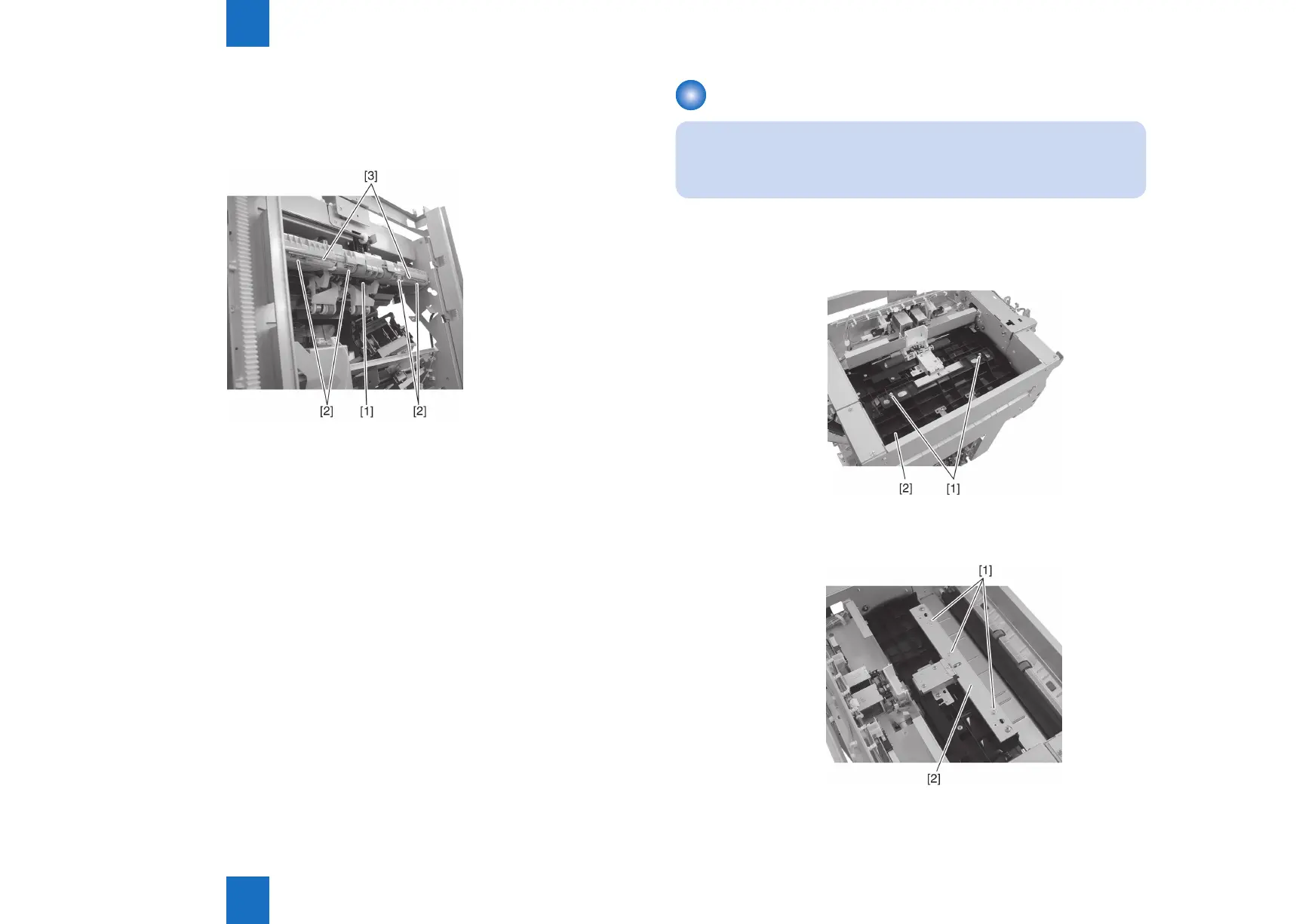 2) Remove two screws [1] and remove the right side section [2] of the inlet upper guide.