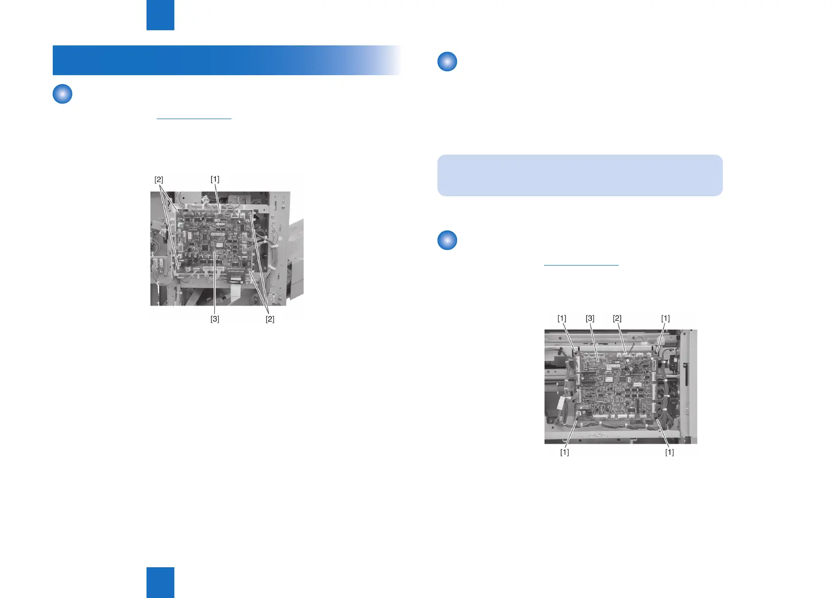 3) Remove four screws [2] and remove the nisher controller PCB [3].