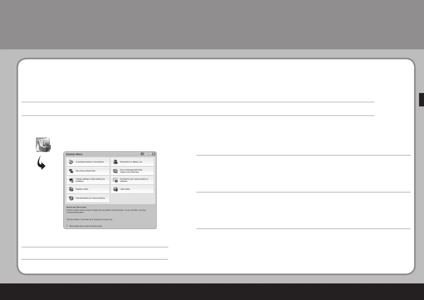 You can start Solution Menu from the Canon Solution Menu icon on the desktop (Windows) or on the Dock