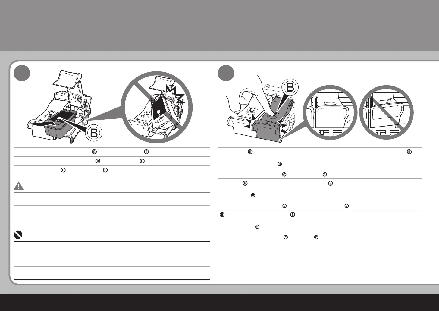 Place the Black FINE Cartridge ( ) into the right slot ( ). Push down ( ) until you hear a click to close the Ink Cartridge Locking Cover ( )