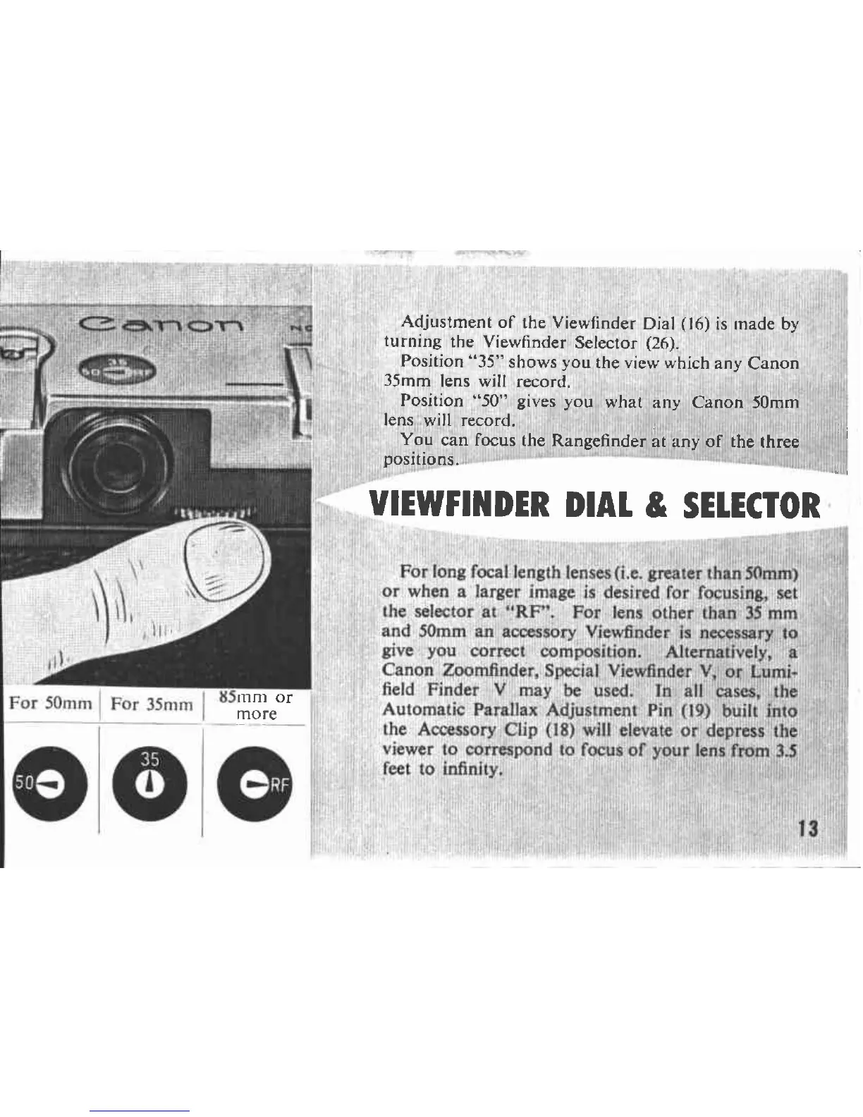 Canon L3 - Viewfinder Dial & Selector; Viewfinder Selector Adjustment; Accessory Viewfinders