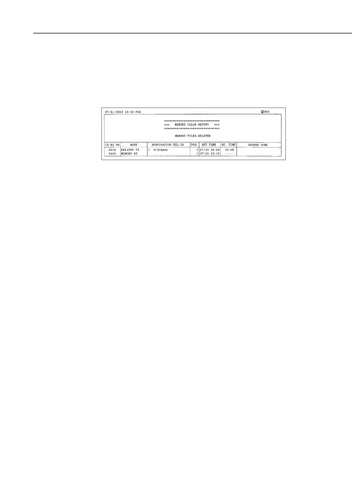 When this fax is turned on and the memory clear report is automatically printed out, the