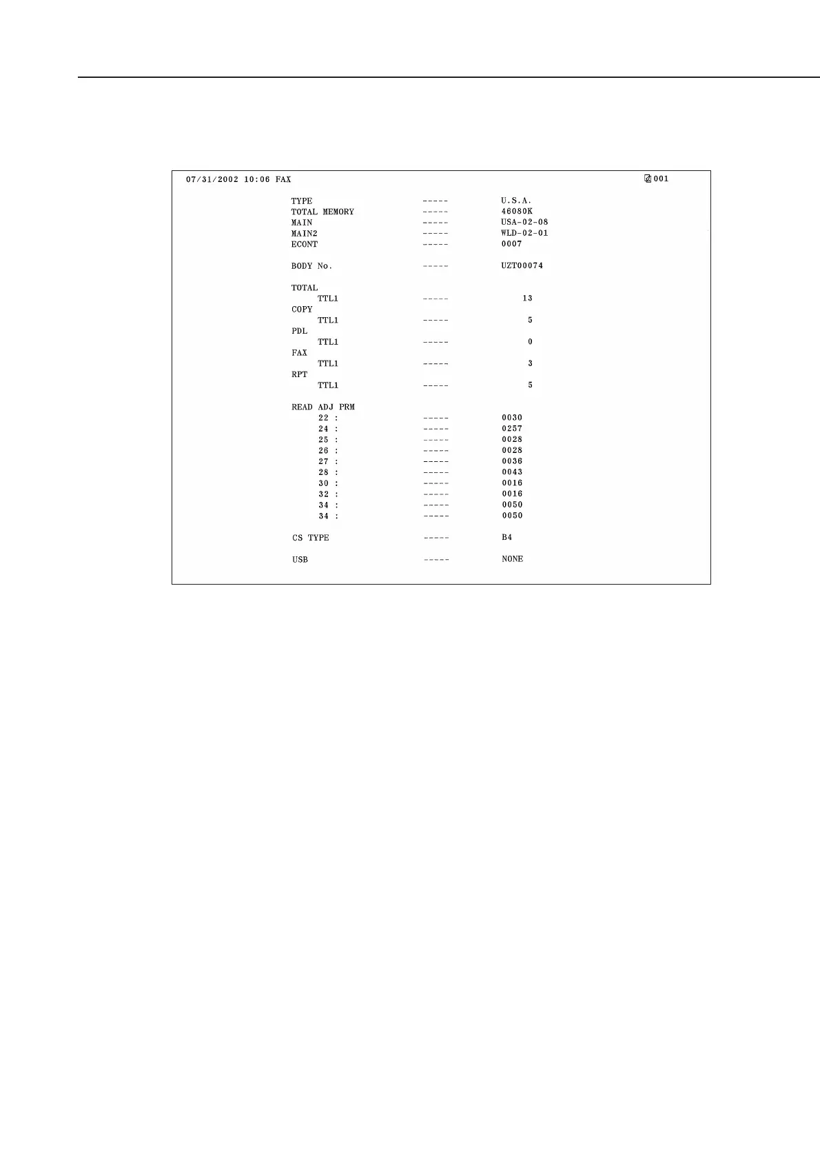 *12 : Adjustment items and settings for the service mode item #6