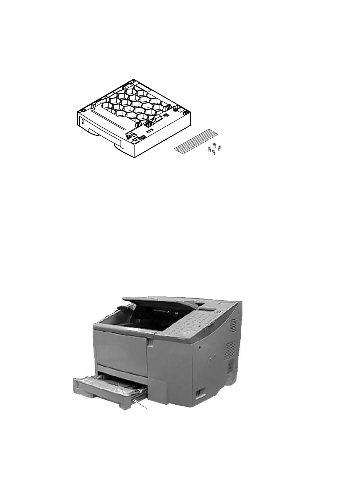 Check that the box contains the cassette feeder including the paper cassette, four screws