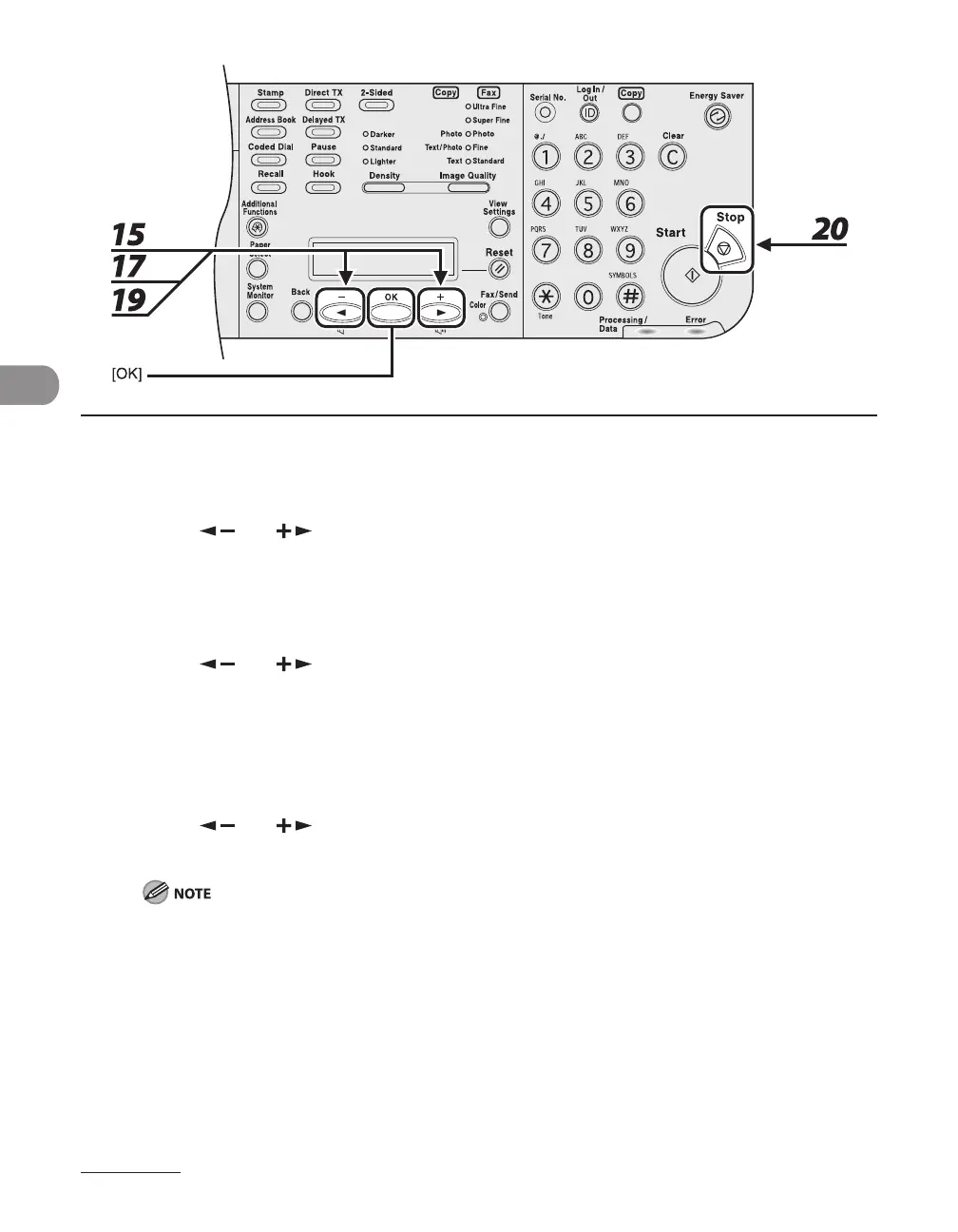 17 Press [ ] or [ ] to select the sending speed (33600 bps, 14400 bps, 9600