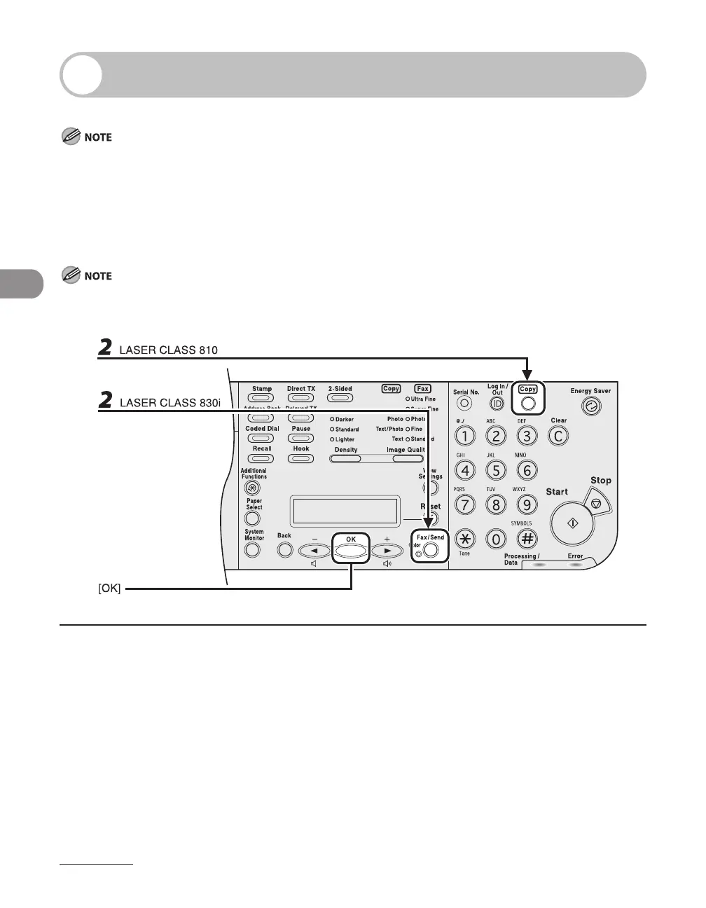 If using the LASER CLASS 810, you can switch to the Fax mode by pressing [Copy/Fax].