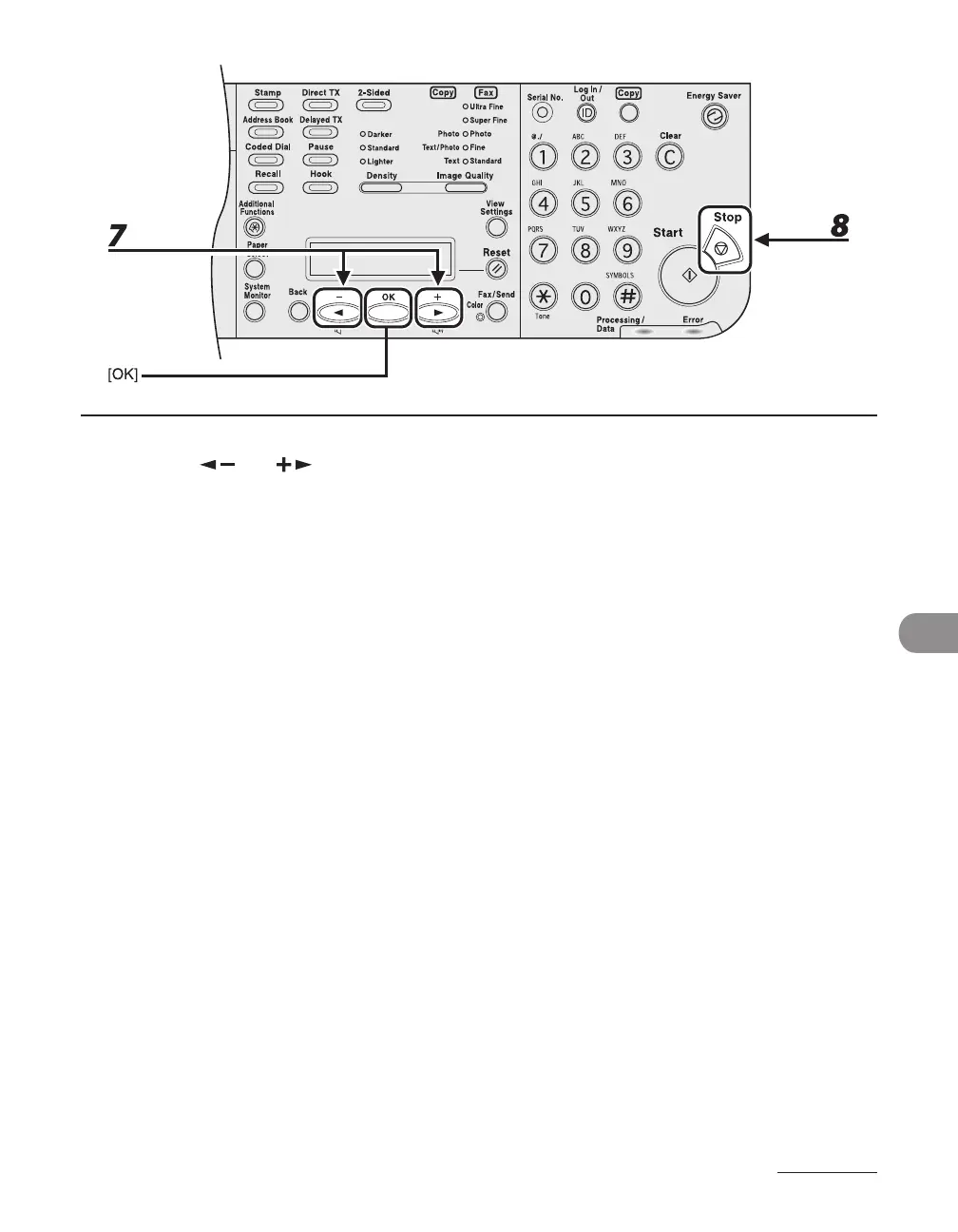7 Press [ ] or [ ] to select <ON> or <OFF>, then press [OK].