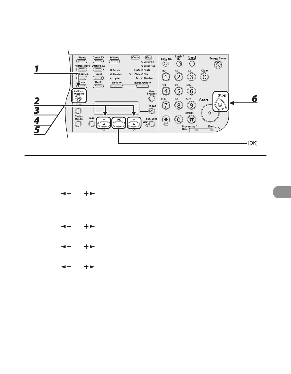 5 Press [ ] or [ ] to select <OFF>, <PROHIBIT> or <CONFIRMATION>, then