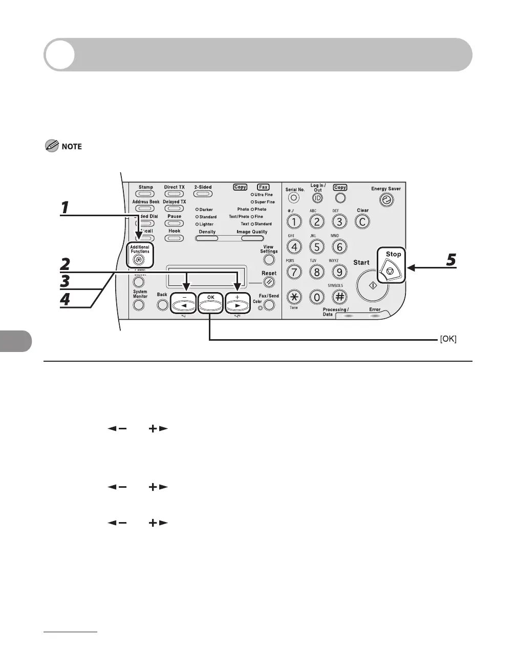 4 Press [ ] or [ ] to select <ON> or <OFF>, then press [OK].