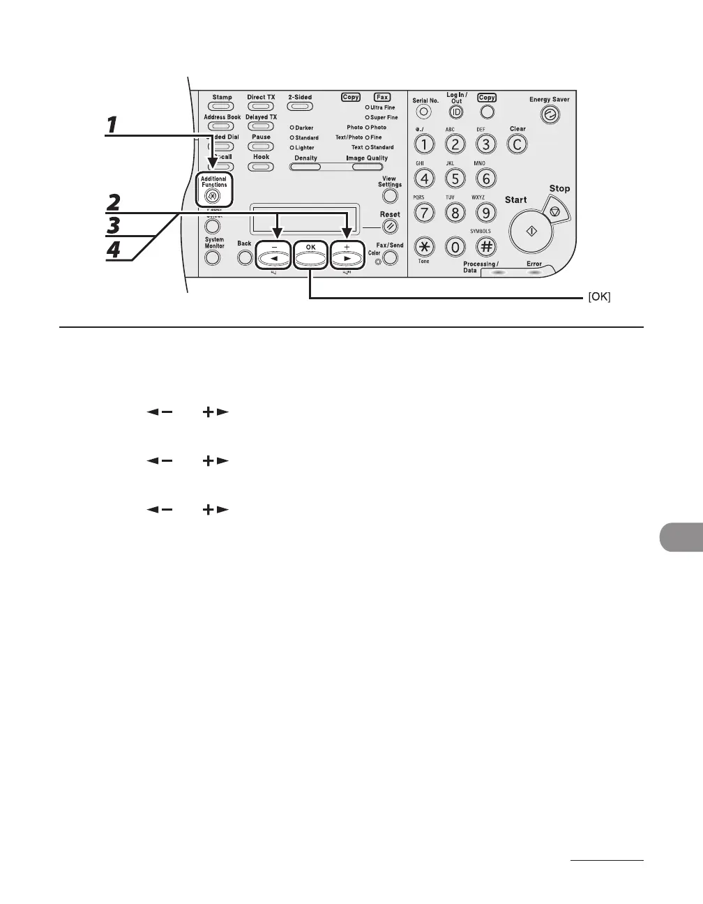 3 Press [ ] or [ ] to select <CASSETTE> or <MP TRAY>, then press [OK].