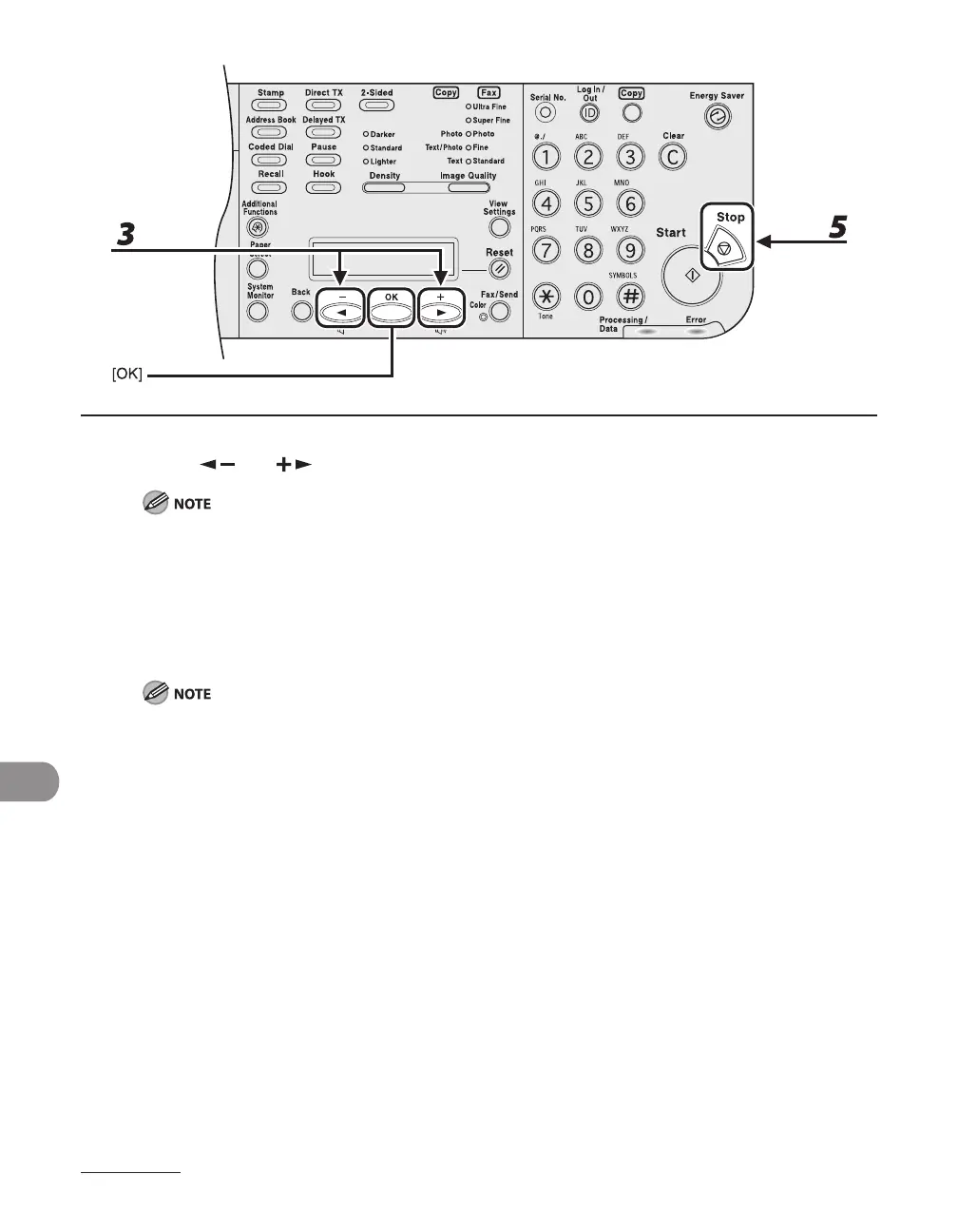 If you press [Stop] before pressing [OK], the setting will not be registered.