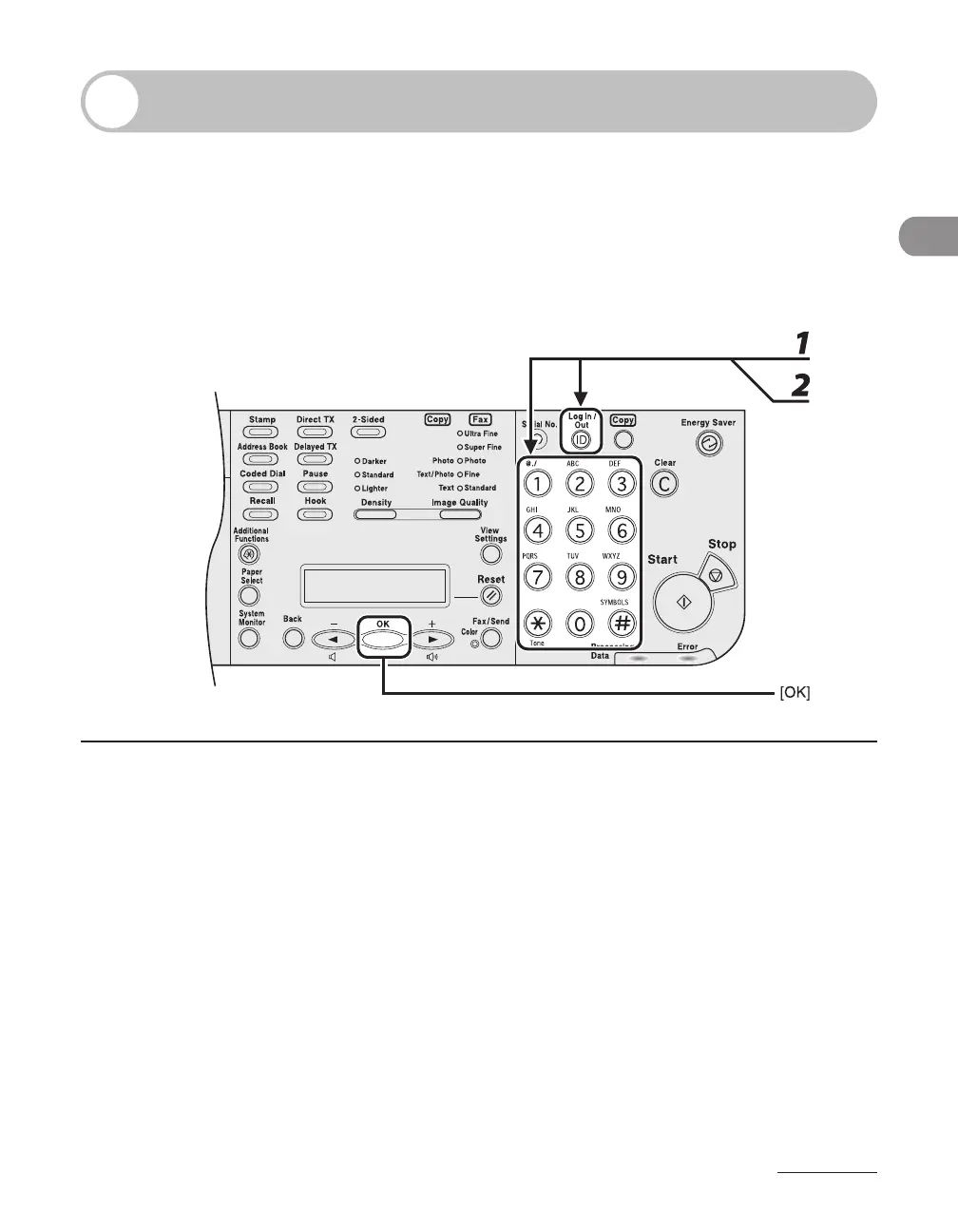1 Enter the department ID or the user ID with the numeric keys, then press [OK]