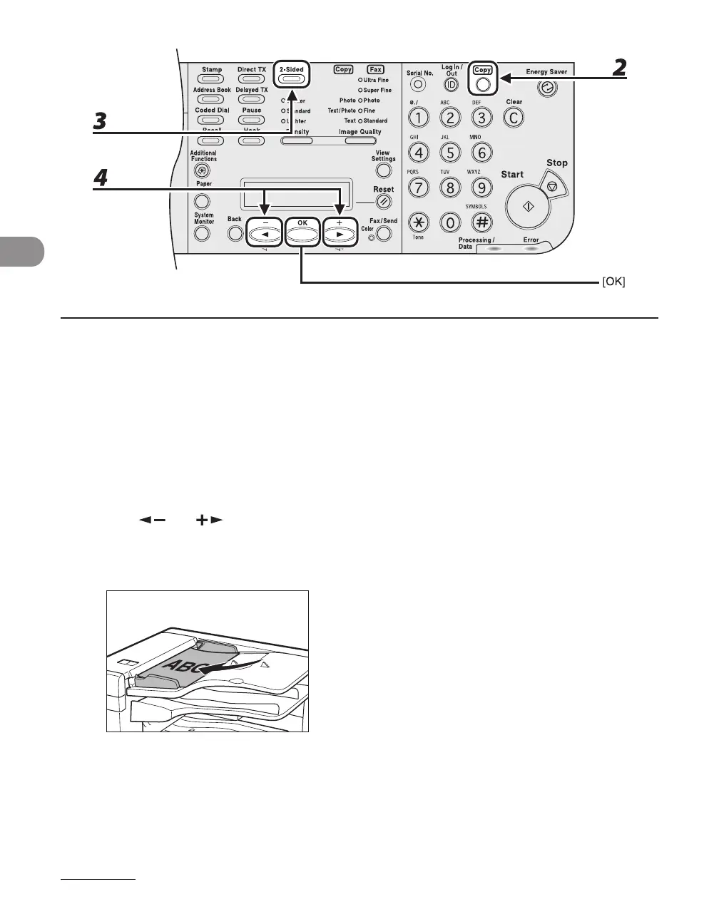 3 Press [2-Sided] repeatedly to select <2 > 1-SIDED>, then press [OK].