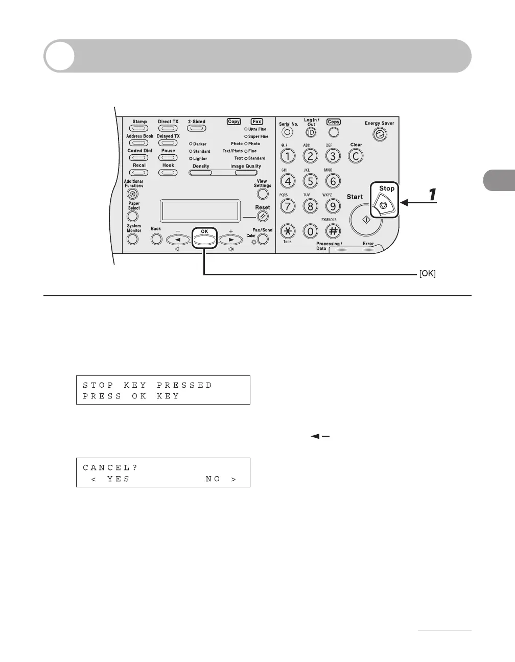 2 When the <STOP KEY PRESSED> message appears, press [OK].