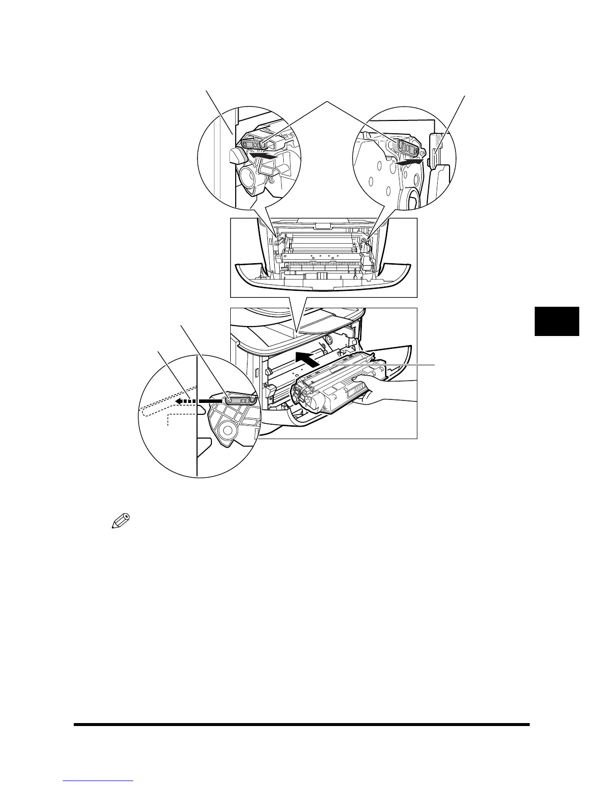 Be sure to position the arrow mark (C) on the cartridge towards the inside of the machine.
