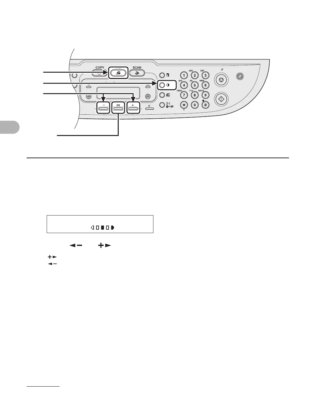 3 Press [ ] or [ ] to adjust the density, then press [OK].