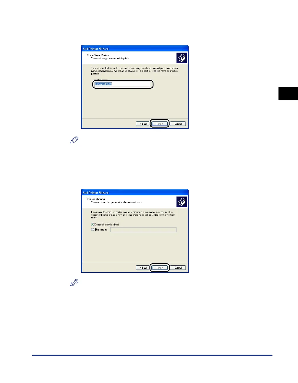 When sharing this printer on a network, select [Share name], and then click [Next].
