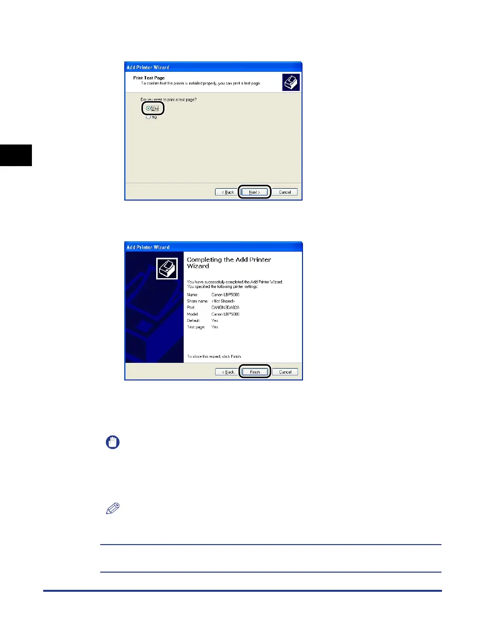 When printing a test page, click [Yes], then click [Next].