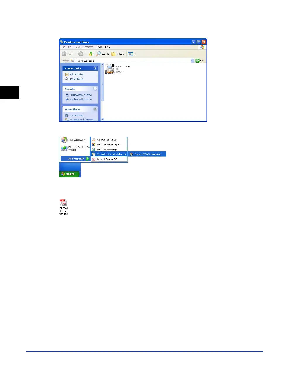 [Canon Printer Uninstaller] is added to [All Programs] under the [Start] menu.