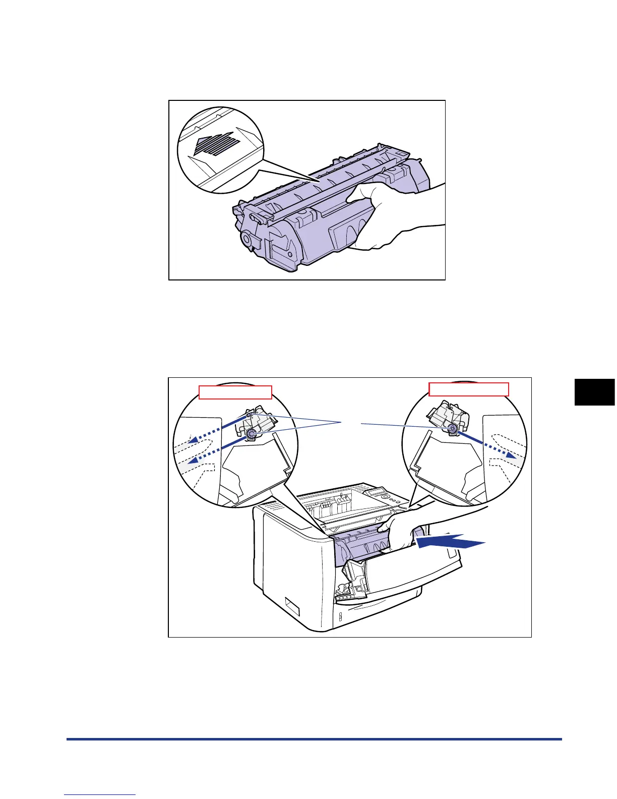 printer while aligning (A) on both sides of the toner cartridge with the toner
