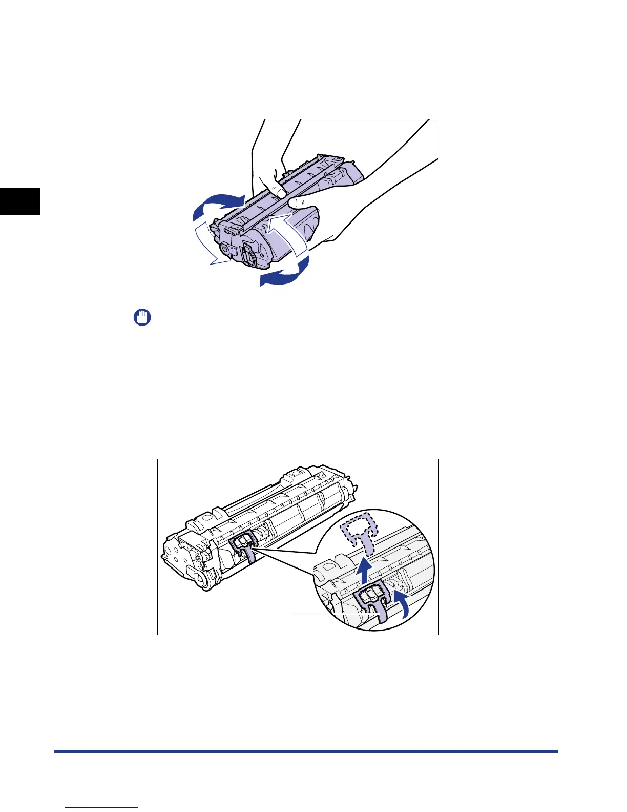 Hold the toner cartridge as shown in the figure, and shake it