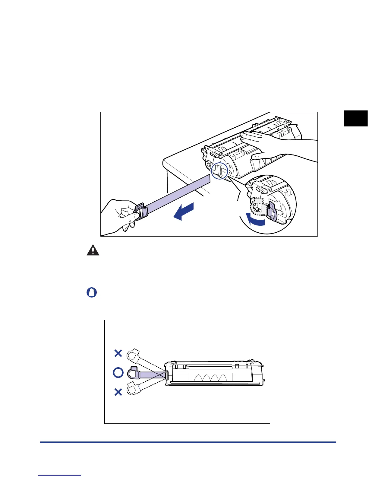 If the sealing tape is pulled out forcefully or stopped at midpoint, toner