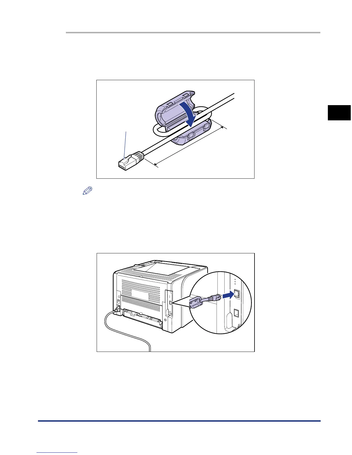 Attach the ferrite core to the LAN cable as shown in the figure.