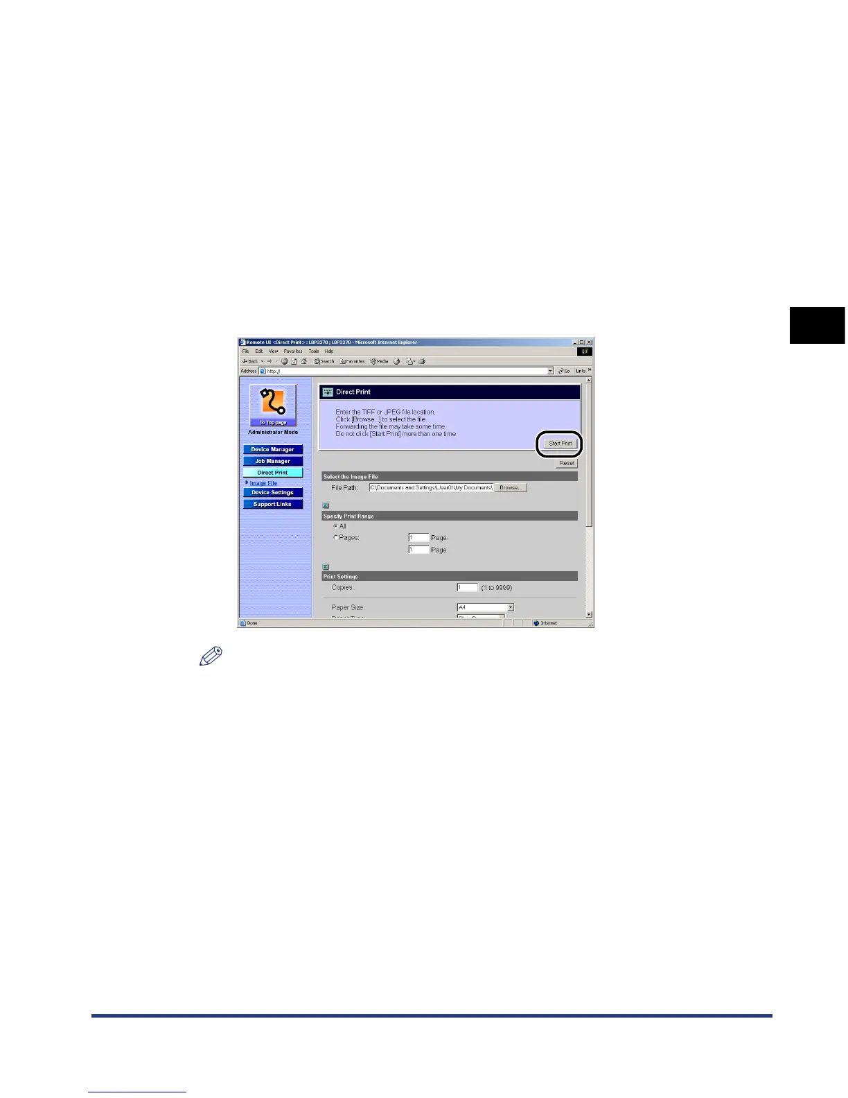 Do not click [Start Print] repeatedly during the transmission of a image file. It may