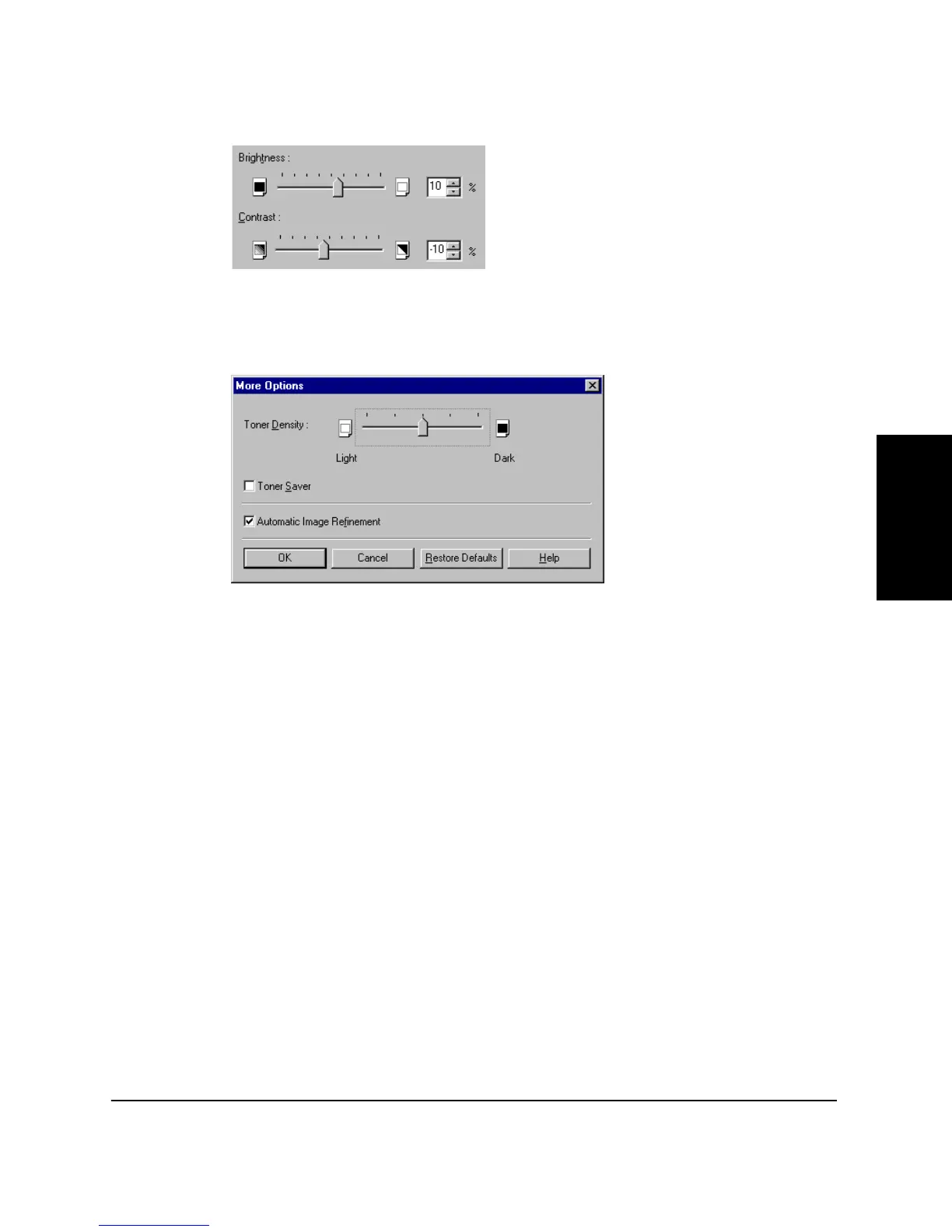 Toner Density lets you select how light or dark your pages print. Move