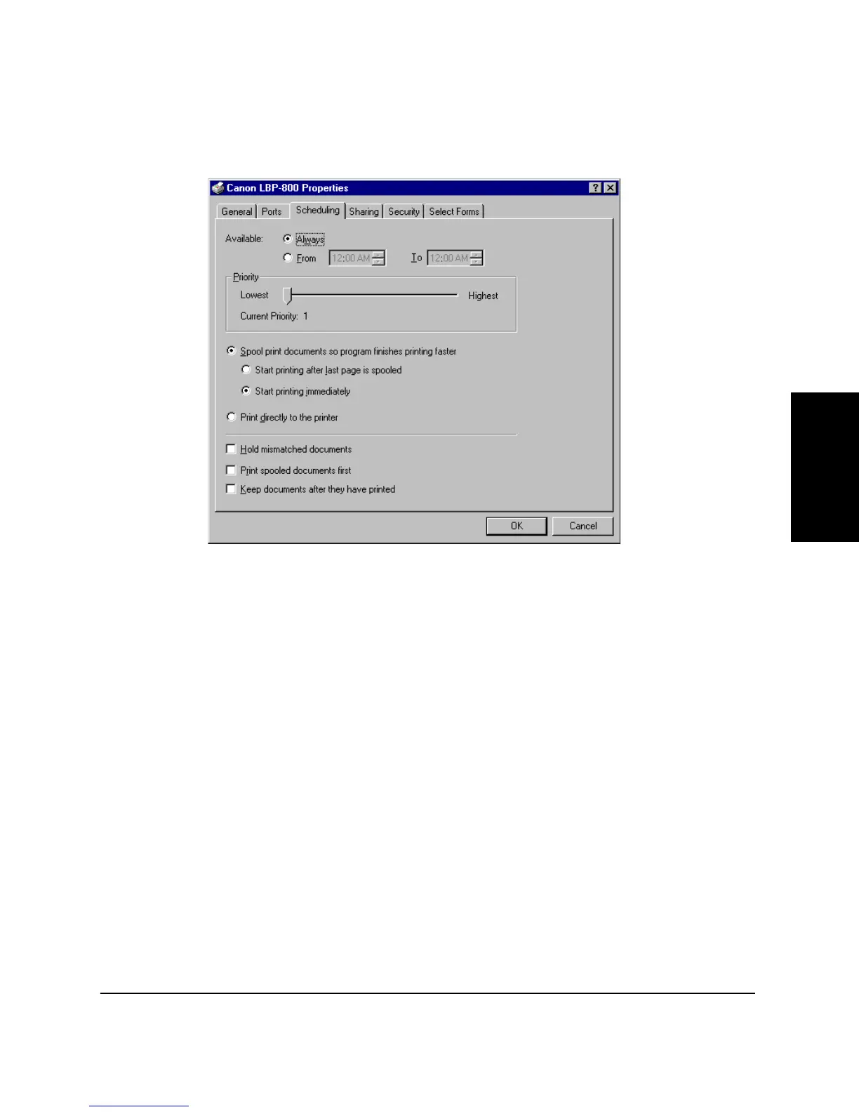 Lets you define print spooling settings. Refer to your operating system