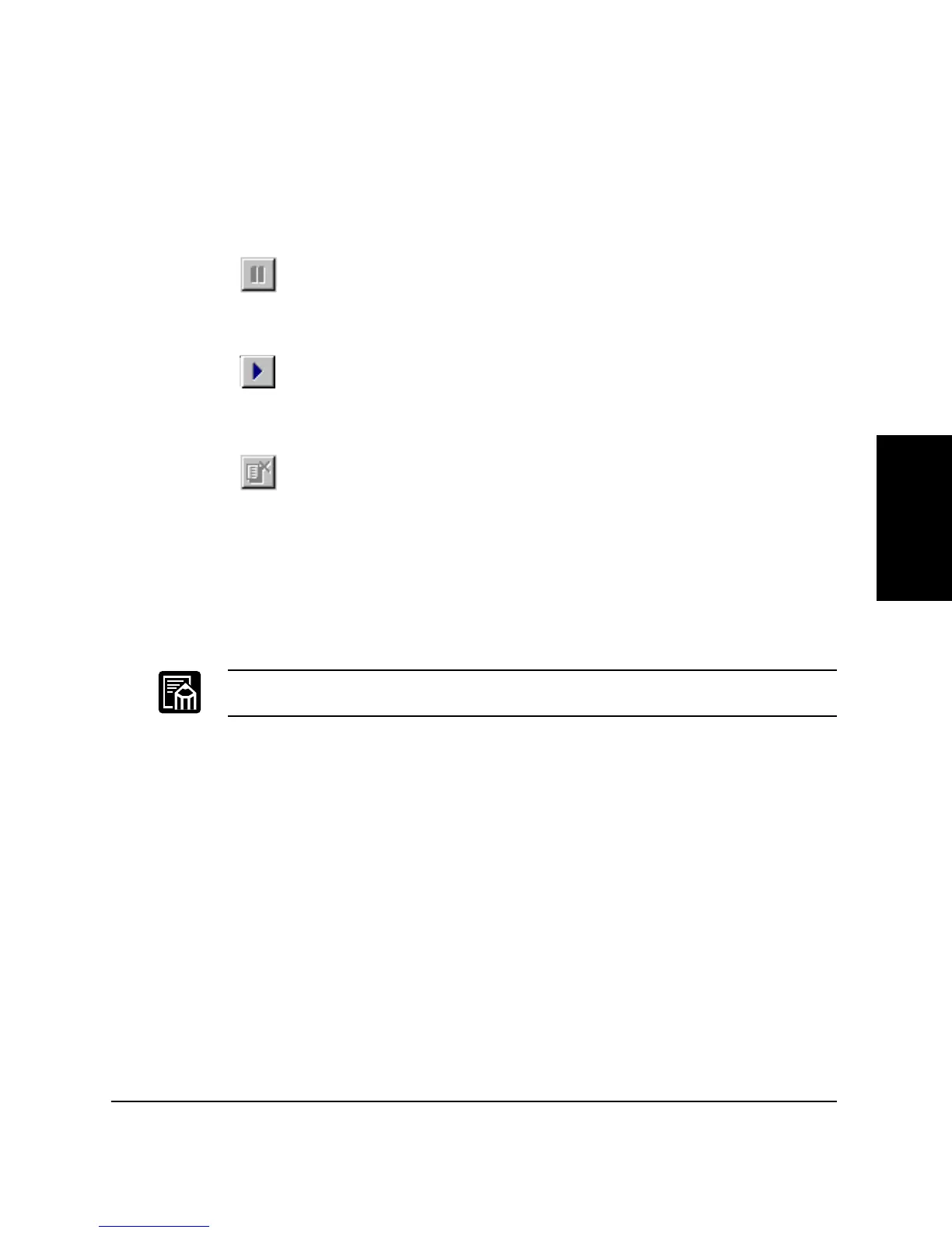 The toolbar has three buttons that you can use to pause, resume, or delete