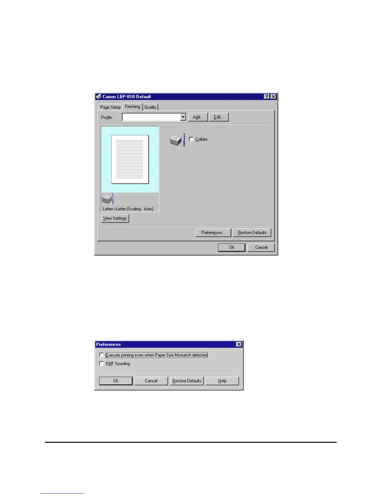Preferences... on the Finishing tab window opens the Preferences