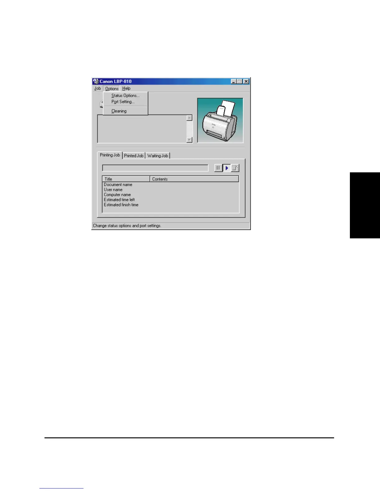 You can select the Options menu from the menu bar of the LBP-810