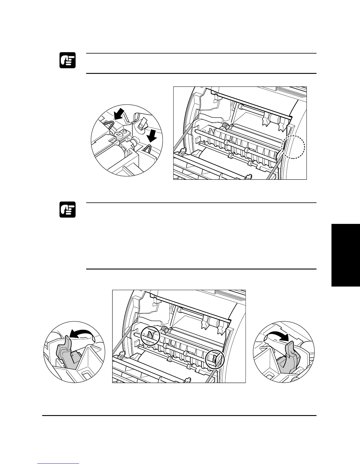To avoid damaging the printer, check that the pressure release levers