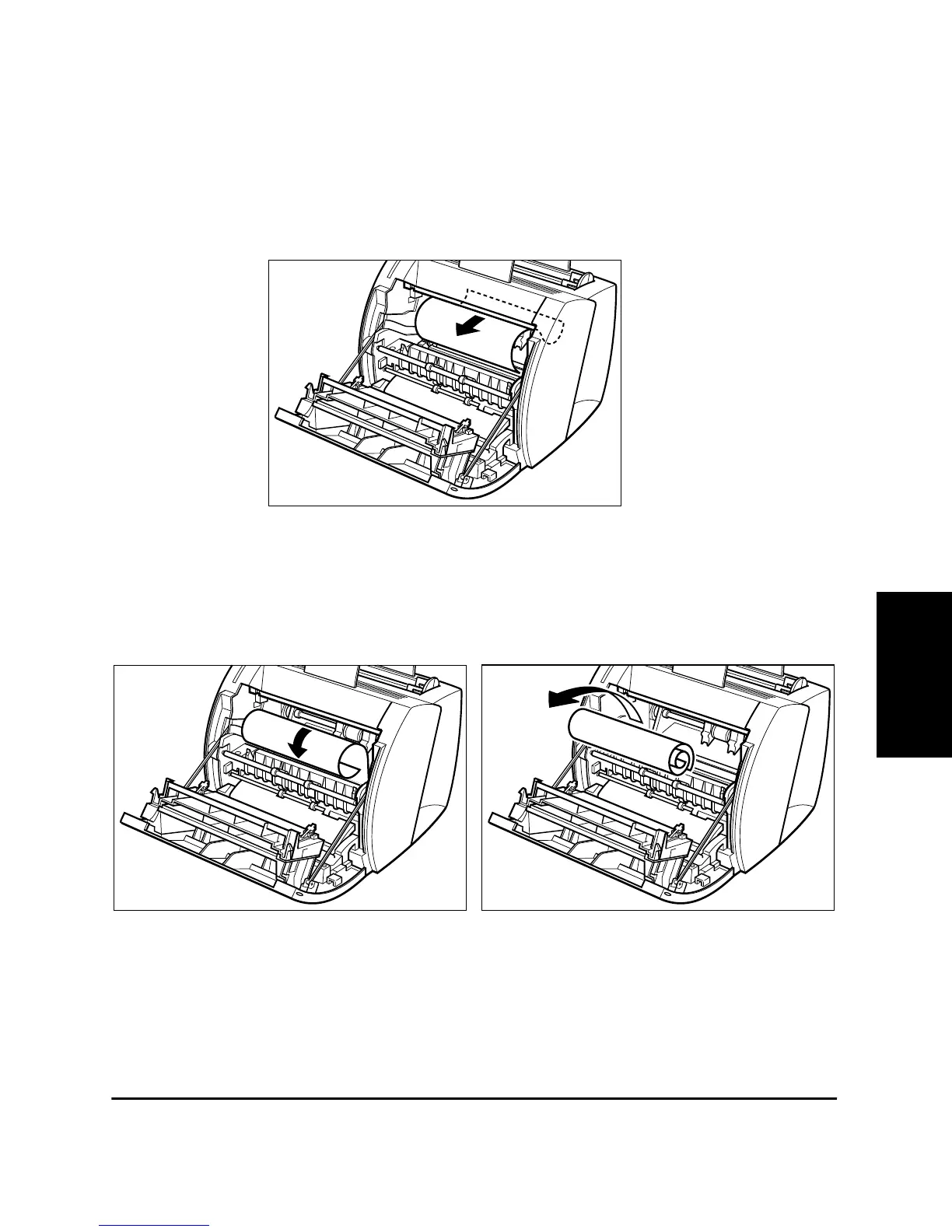imaging area, pull the paper forwards and roll it inwards. Do not pull